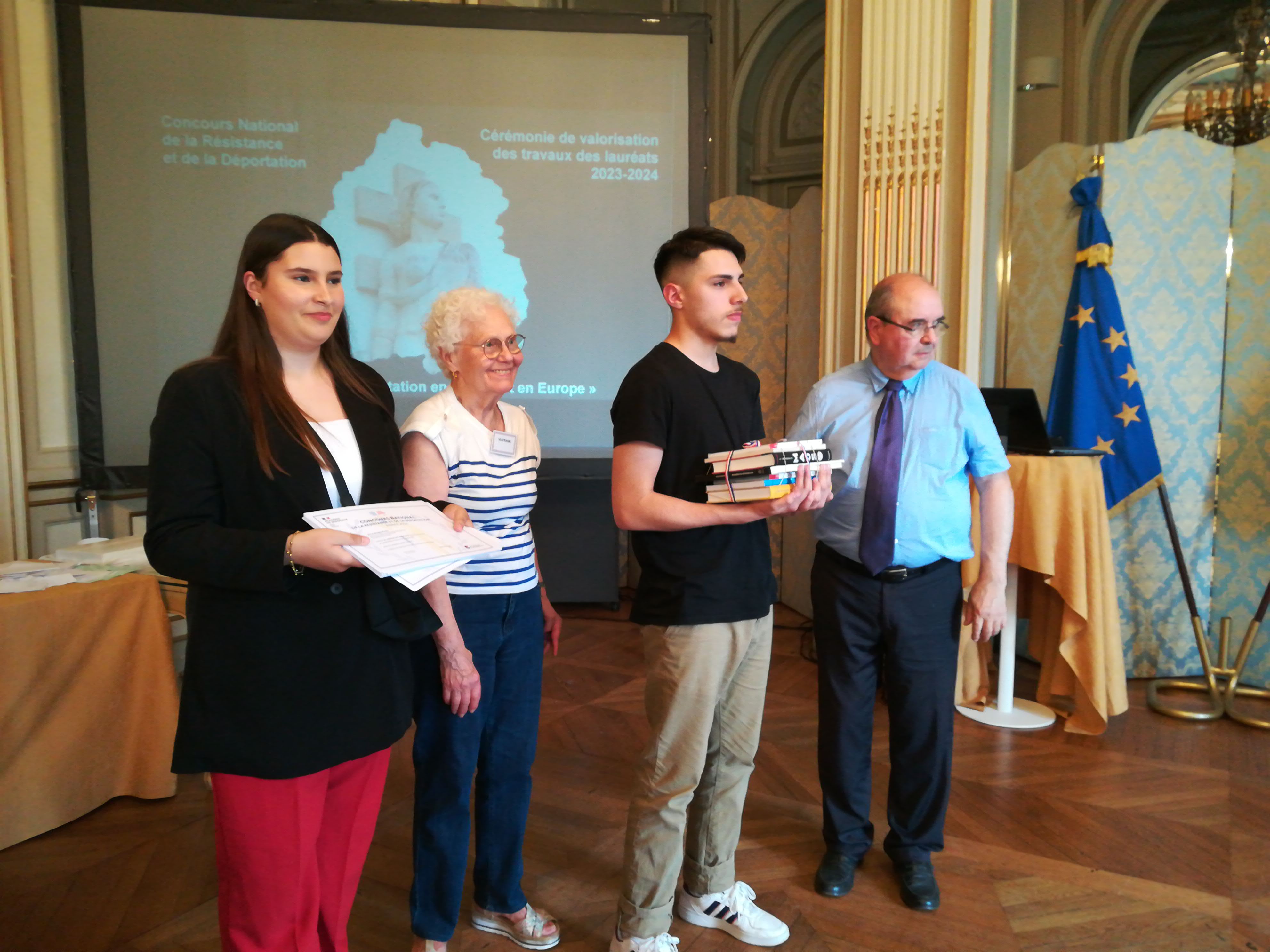 A l'issue d'un travail collectif réalisé en mars 2024 sur le thème "Résister à la déportation en France et en Europe, nos deux classes, chacune représentée par un élève, ont reçu en plus de leur prix la mention "Très bien" pour leur implication et leur pertinence.